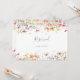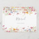 Esta placa de casamento colorida de flor silvestre é perfeita para um casamento rústico. O design apresenta flores verdes, cor-de-rosa, pinceladas, amarelas, púrpuras, multicoloridas do campo. Estes cartões são duplos e podem ser usados para reservar cadeiras ou mesas na cerimônia de casamento, recepção ou qualquer evento.