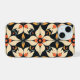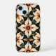 Esse trabalho de arte apresenta um padrão elegante e simétrico composto por formas semelhantes a abstrato-pétalas dispostas em um design harmonioso. A paleta colorida inclui tons quentes de creme, laranja e amarelo-mostarda, contrastados com fundo preto profundo. Os motivos de encravamento criam uma sensação de equilíbrio e fluidez, com cada elemento cuidadosamente posicionado para formar uma composição coesa e ritmada. O design evoca uma mistura de formas inspiradas na natureza e precisão geométrica, resultando em uma peça visualmente cativante.