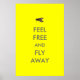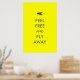 Sinta-se livre e voe longe de Poster. Um grande inseto néon amarelo voa poster com uma mosca caseira e um slogan de texto totalmente personalizável "Sinta-se Livre e Voe Longe". Este impressão de poster de mosquito legal é perfeitamente personalizável, adicione seus textos e imagens!
