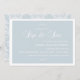 Adorável convite para apresentação de fotos apresenta um design de damasco de safra azul e branco. Este convite está disponível em mais cores na Loja de Lobos! Para obter mais opções, pressione o botão de personalização laranja.