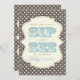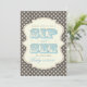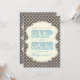 Com apenas um toque de talento no campo na tipografia este doce design de pokadot azul e cacau faz um convite encantador para receber familiares e amigos para conhecer seu novo bebê