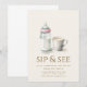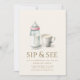 Este gole e veja o modelo convite de festas apresenta um design atraente e aconchegante. No topo, uma garrafa fofa de leite com um boné cor-de-rosa senta-se ao lado de uma xícara de café a vapor, simbolizando o calor e o conforto de se reunir com entes queridos para conhecer o novo bebê. A paleta de cores suaves e as imagens lúcidas criam uma atmosfera acolhedora, perfeita para celebrar esta ocasião especial. Abaixo da ilustração deliciosa, é fornecido amplo espaço para os convidados encontrarem todos os detalhes essenciais, incluindo a data, hora e local do evento. Este convite dá o tom para um relaxado e alegre encontro.