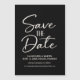 Este casamento limpo e romântico Salve o cartão magneta de Data tem um esquema preto e branco e tipografia cursiva escrita à mão. Personalizado com os seus nomes, a data do seu casamento, a localização e o endereço do seu site de casamento. É um design lindo, perfeito para um simples casamento ou anúncio de noivado.