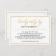 Este simples, porém elegante cartão de RSVP moderno em ouro para site de casamento ou recepção, apresentando bordas douradas e elegante letra manuscrita, pode ser usado em conjunto com um cartão de convite para jantar de recepção formal ou cartão de anúncio de casamento/recepção (vendido separadamente) e apresenta informações para que os convidados respondam através do site do casamento, por e-mail ou mensagem de texto, ou através de um cartão de resposta. Fácil de personalizar com a sua própria data de resposta. Perfeito para a recepção realizada em um local de casamento simples, rústico, elegante, ao ar livre, celeiro, jardim, fazenda ou qualquer local de casamento moderno ou trendy. Fácilmente personalizado com a sua própria foto e informações de recepção de casamento. Design por T.K. Goforth.