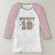 Um doce desportivo cor-de-rosa e marrom bonito 16 do estilo do jérsei flanqueado por duas estrelas em camisas femininos do doce dezesseis, em roupa, em roupa, em décimas sextas fontes da festa de aniversário, em presentes, em favores e em lembranças um adolescente é certo amar em seu 16o aniversário.