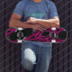 Essa qualidade feita no skate é mostrada com um padrão de abstrato de arte impressão em cores de preto, cinza e rosa. Comprar como está ou personalize este item de acordo com o seu gosto. Imagem do stock vecteezy.com