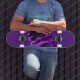 skate mostrado em um impressão gráfico abstrato de fumaça multiroxo a cores. Cores MultiComprar Roxo como está ou personalize este item de acordo com o seu gosto. Imagem do stock