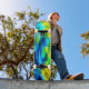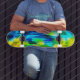 Essa qualidade feita no skate é mostrada com um padrão de abstrato de arte impressão em cores azul, verde e amarelo. Comprar como está ou personalize este item de acordo com o seu gosto. Imagem do stock 123freevectors.com