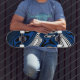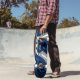 Este skate é mostrado em um impressão de espiral de abstrato art. Cores Preto, Azul, Branco Personalize este item ou comprar como está. Imagem do stock freepik.com