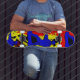 O skate do soldado, com as cores amarela azul e preto vermelhos. É um grande presente para fãs de patinagem.