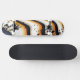This bold abstract skateboard deck features flowing organic curves in warm orange tones, soft gradients and scattered black accents. The dynamic composition creates a sense of movement and energy, turning your board into a piece of contemporary art.