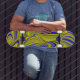 Skate abstrato 3D em azul amarelo Dourado
