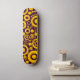Um desenho abstrato atraente feito de círculos, alguns sólidos, alguns duplos, alguns assustados como rodas. Todos os círculos estão conectados a uma rede de linhas, como cordões, cordas ou fios ou talvez caules e tendrils. Criar uma composição que pode ser o funcionamento interno de algum tipo de mecanismo, algum tipo de diagrama, talvez um mapa microcósmico do universo. As cores são âmbar em um fundo roxo escuro. Produzido a partir de um vetor original e de saída a 300 dpi para garantir a melhor qualidade de impressão.