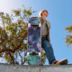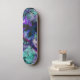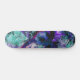 Este design de inspiração de cristal fluorito apresenta um padrão de abstrato de mármore em tons de roxo ametista, verde esmeralda e azul safira com uma fita de rubi.