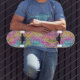 Arte moderna com uma camada fina de tinta azul acrílica, amarela e cor-de-rosa brilhante com impressão de plástico branco com bolhas.