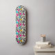 Este skate vibrante apresenta uma fusão dinâmica de listras arrojadas, em preto e branco, semelhantes a zebra, recobertas por salpicos coloridos em forma de folhas de outono. O impressionante contraste entre o fundo monocromático e as formas vívidas de vermelho, laranja e amarelo cria um padrão visualmente cativante. Ideal para várias aplicações criativas, essa design reúne a essência selvagem das estampas de animais com os tons quentes de folhagem de outono.