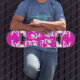 Adicione seu próprio nome personalizado O skate personalizado apresenta seu nome personalizado em tipografia branca moderna em um simples fundo rosa-quente. Personalize editando o texto na caixa de texto fornecida. Dê um presente personalizado, skate personalizado para seu skate favorito no Natal, aniversário ou BFF. Desenvolvido por ©Evco Studio www.zazzle.com/store/evcostudio