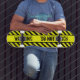 skate no sinal de aviso legal design. "AVISO - NÃO TOQUE" O texto é personalizável.