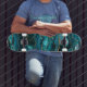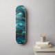 Tabuleiro de skate azul e dourado. Arte digital abstrato moderna.