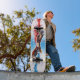 Skate Águia Cálida voa sobre um salto vermelho, branco e