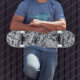 Pisque com o nosso skate de textura de alumínio, com um design de alumínio único e atraente que é perfeito para patinadores de todas as idades. Disponível em todos os tamanhos apenas como um andar ou como um skate completo com caminhões e rodas, é a combinação perfeita entre esporte e design contemporâneo. Saia no skate ou melhore sua decoração doméstica com este skate de textura de alumínio exclusivo.