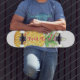 Este skate feminino é decorado com um abacaxi desenhado à mão em tons de amarelo e verde com tipografia rosa. Facilmente personalizável com o nosso nome. Porque nós criamos nosso próprio trabalho de arte você não encontrará essa imagem exata de outros designers. Original Watercolor © Michele Davies.