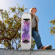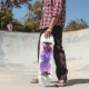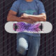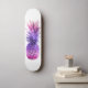 Um moderno pavimento de skate de cor rosa e abacaxi púrpura.