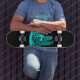 Skate Angel, perdido no pensamento, Design preto e verde