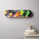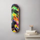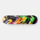 Este skate exclusivo apresenta um padrão de abstrato em várias cores brilhantes e preto.