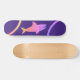 Um baralho de skate com um tubarão arco-íris em fundo roxo. O tubarão e as linhas curvas têm um aspecto brilhante no arco-íris. (A brilha é uma imagem simulada e não uma folga real) Tubarão Arco-íris Glitter Roxo Skateboard Design de Natal | ©Melissa Patton — Artista/Ilustrator