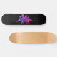 uma trabalho de arte colorida de uma silhueta de estegossauro em todas as cores do arco-íris num skate preto.