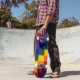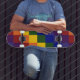 Celebre seu Orgulho, apoio ou amor pela cor com este padrão legal de arco-íris. Cada fileira de quadrados coloridos arco-íris desloca um quadrado para a direita para criar um padrão colorido. Os quadrados de vermelho, laranja, amarelo, verde, azul, índigo e violeta formam uma sequência de faixas estendidas na diagonal. Imagem de pixel 9000 x 7000 criada digitalmente. Copyright ©2012 Claire E. Skinner, Todos os direitos reservados.