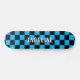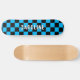 Quadro de skate com preto divertido e preto brilhante e ousado, azul-claro, céu, bandeiras de corridas coloridas, marcam o padrão de verificação design. cobrir original e legal para o motif amante da motif, que é sensível a tendências e que ama a arte.