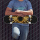 Asas mecânicas brilhantes, com engrenagens e faixa redonda de latão. Steampunk