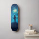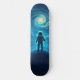 This skateboard is for sci-fi fans! It features a whimsical illustration of an astronaut sitting on a small planet surrounded by vibrant cosmic elements. The colorful background features stars, planets, and nebulae, creating a dreamy space atmosphere.