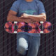 Veja como este skate é legal com um padrão elétrico estático com um buraco negro. Se você olhar de perto você verá um X eletrificado. Este seria um skate radical nos parques ou cruzando com amigos e familiares. Você também poderia usar isso como uma peça de arte em parede.