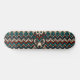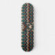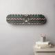 Este é um rosto de lobo decorativo feito à mão e estilizado com padrões astecas em cores preta, vermelha, turquesa e bege.