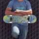 Este design legal apresenta um padrão abstrato em tons suaves de azul e verde. Faz um presente excelente para um amante de skate.