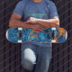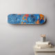 Crânios azuis e alaranjados e rosas feitos no lápis colorido.