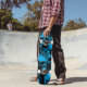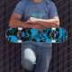 Os crânios de Grunge são tão perversos em azul e coloridos para este andar de skate.