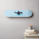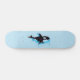 um trabalho de arte de aquarela tradicional de uma orca negra e branca ou de uma baleia assassina num skate de cor azul clara