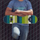 Um skate com uma design irregulares atraente em cores harmoniosas.