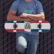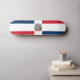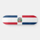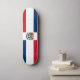 Esta design apresenta a bandeira da República Dominicana (em espanhol, República Dominicana), que é um país localizado na ilha de Hispaniola, no arquipélago das Grandes Antilhas da região do Caribe. A República Dominicana ocupa os cinco oitavos orientais da ilha, que partilha com o Haiti. O idioma oficial do país é o espanhol. A capital e maior cidade da República Dominicana é Santo Domingo. A bandeira da República Dominicana é vermelha, branca e azul: o azul significa liberdade, o branco para salvação e o vermelho para o sangue dos heróis. No centro da bandeira está o casaco de armas da República Dominicana, que inclui o lema "Dios, Patria, Libertad" ("Deus, Pátria, Liberdade").
