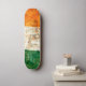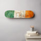 Este artigo tem a bandeira irlandesa em um estilo afligido que esteja em um leve ângulo. A bandeira tem bares verdes, brancos e alaranjados verticais em uma textura áspera.