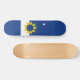 skate com um design com a bandeira de Topeka, Kansas. Uma bandeira azul e branca com um símbolo amarelo