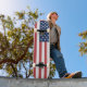 Bandeira dos EUA. Grande bandeira dos EUA da qualidade. Nós temos outros produtos do presente dos EUA, camisas dos EUA com parte dianteira e impressões traseiros, canecas dos EUA, cartões dos EUA e muito mais para EUA