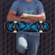 Skate baralho azul e preto dos tubarões