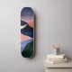 Design de arte da paisagem da lua, moderna, metálica, dourada e prateada, apresentando uma espantosa lua crescente branca e prateada, falso sol metálico dourado, cor rosa e azul escura, gradiente da noite cor azul-rosa e escuro céu com estrelas brancas brilhantes e poeira estelar, montanha verde, montanha rosa, e montanha azul-escura e uma ilustração estonteante do rio azul macio. Arte estética paisagística minimalista do boho.