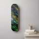 Os fios de luz difusa e fria brilham ao longo das cristas texturizadas desta arte abstrato digital 3D altamente detalhada, como a vida bioluminescente descoberta nas texturas surreais do mar profundo. As cores principais são azul, verde e amarelo.