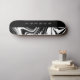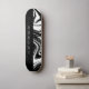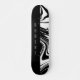 O skate tem um design único com bloco sólido de preto num lado e um padrão de espiral em preto e branco no outro lado. Personalize com nome personalizado ou texto para uma ideia de presente de excelente para aqueles que adoram skate. O nome está em uma orientação vertical em caracteres de cinza.